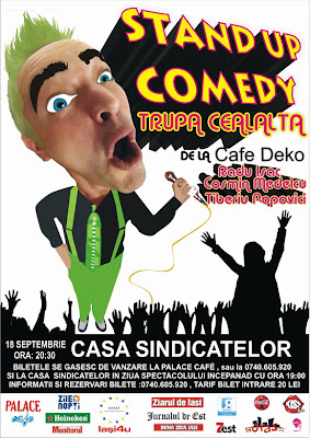 Spectacolul va fi sustinut de Trupa Cealalta de la Café Deko, incepand cu orele 20.30. Detalii despre stand up comedy : www.palacecafe.ro , sectiunea Stand Up si www.inoras.ro