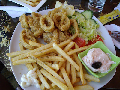 Duminica a fost o zi superba de plaja si plimbare, dar si de explorare de locuri si de mancaruri locale. Marea e plina de pietre si bolovani si e absolut inpracticabila daca nu stii sa inoti. Plaja e super ingusta, insa e foarte curata si bine organizata. Pentru 3 euro pe zi primesti sezlong, masuta, umbrela, lighean cu apa pentru a-ti spala picioarele de nisip, saltea, ochelari de apa plus serviciile personalului care te trateaza extraordinar de bine. Creta e plina de romani, nu numai ca turisti dar si ca oameni care lucreaza acolo. M-am intalnit chiar in aeroport cu George, un vechi prieten din Iasi care s-a nimerit sa fie ghid turistic chiar la compania cu care am venit noi si care ne-a ajutat sa exploram si sa intelegem mai bine viata de acolo. In plus, am dat peste tot de romani angajati acolo: la restaurantele la care mancam, in magazinele de unde faceam cumparaturile, la firmele de rent-a-car, in cluburi, pe plaja, pe strada. Chiar si la radio se auzea din ora in ora Morandi, iar terasele rasunau din cand in cand cu manele romanesti. Dar tot nu se compara cu litoralul nostru, oricat de multi romani ar fi fost. Peste tot insa se aude un sunet continuu al unor insecte numite Tzitziki care stau in orice se numeste copac sau tufa. La un moment dat te obisnuiesti, insa la inceput s-ar putea sa ti se para chiar deranjant. Eu personal am crezut initial ca sunt alarme la masini. Seara am incercat si un club local, insa ne-a trecut repede pentru ca destrabalarea nordicilor e in floare. Vei vedea la tot pasul fete care sunt care mai de care mai aranjate si machiate, tocuri cat mai inalte, fuste cat mai scurte, bluze cat mai decoltate, intr-o mana cu o tigara si in alta cu bautura, incercand sa agate baieti pentru distractie. La fel e si in cazul baietilor care traiesc intr-un permanent flirt.